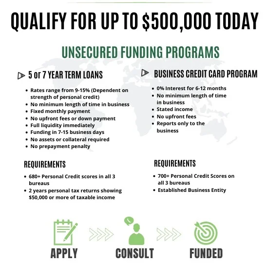 Access the funding you need without putting up assets or navigating lengthy approval processes. Our Unsecured Funding Programs are designed for entrepreneurs, startups, and established businesses looking for rapid, reliable financing based solely on credit strength and income.